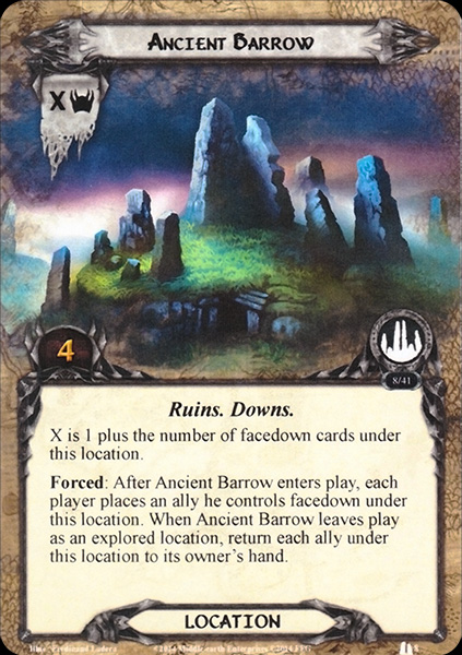 - If you can get an Ancient Barrow in your staging area with little to no allies under it, perhaps one drawn during stage 2A, leave it there! If it’s not in the deck you can’t draw it and it can’t steal your allies. You only really want to travel here if the threat is killing you, you really need an ally it stole back, or you’re doing so well that you’ve got nothing else to do.