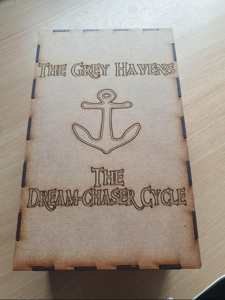 Now, in all honesty I can’t take any credit for this design as these MDF books have long been in Darrel’s line of products. He is responsible for this genius design of etching a series of lines into a sheet of MDF, allowing it to curve like the spine of an old ancient tome. I just asked him to add some LOTR style graphics, and tokens!