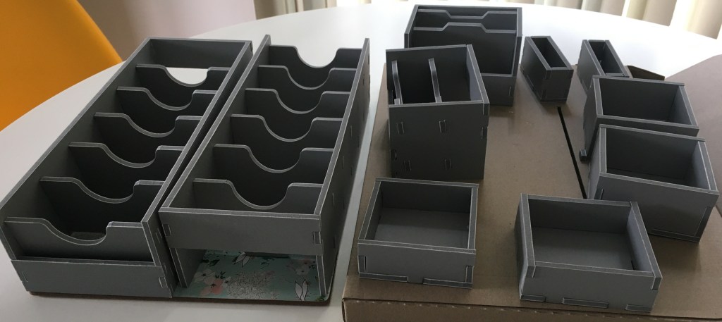 My usual storage solution would be Broken Token. I’ve used a Token insert for Caverna and it did exactly what I needed it to do, which was to organise a million bits and pieces. The resource tray is worth it’s weight in gold. I digress.