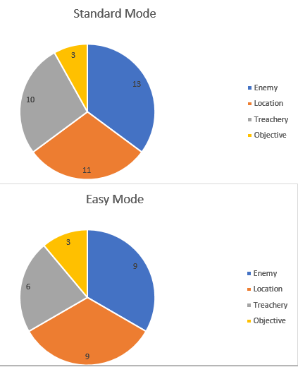 - The encounter deck consits out of 37 cards in Normal mode, and 27 in Easy mode