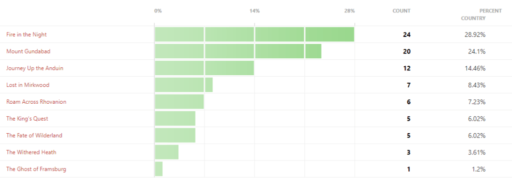 As the leaves fall down, another month comes to an end. In this month I put up a new poll on the blog where you could fill in your favourite two scenarios of the recently completed Ered Mithrin cycle. This cycle had a few amazing quests, but also a few very long slogs through the encounter deck. Putting all 9 quests against each other yielded some obvious, and some surprising conclusions.