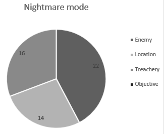 The statistics do not count Gollum to be a part of the encounter deck. As you can see, the majority of the cards in the deck are enemy cards, and with several treacheries having surge, you can usually be sure of at least 1 enemy being revealed each round in multiplayer. There aren’t a lot of easy encounter cards left either, making it difficult to overcome the staging area, which can stall your progress. This will end up costing you extra turns, which is very dangerous in this quest, as it raises threat of the player guarding Gollum by a lot.