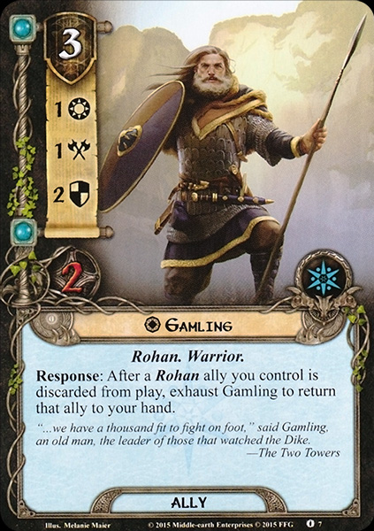 With my three victories I don’t really need to adjust the deck, but I want to point out that I didn’t really make use out of Gamling and the whole discarding engine. I would cut two, maybe even all three copies of him and swap in maybe Eomund or some generic Rohan allies. I left out a lot of the Rohan discard allies like Escort from Edoras or Westfold Horse-Breaker, so this might have made Gamling even less appealing. But the whole discard engine seems still just much less efficient than cards like Rider of Rohan and Westroad Traveler, even with the support of new cards like Horn of the Mark and Muster of Rohan.