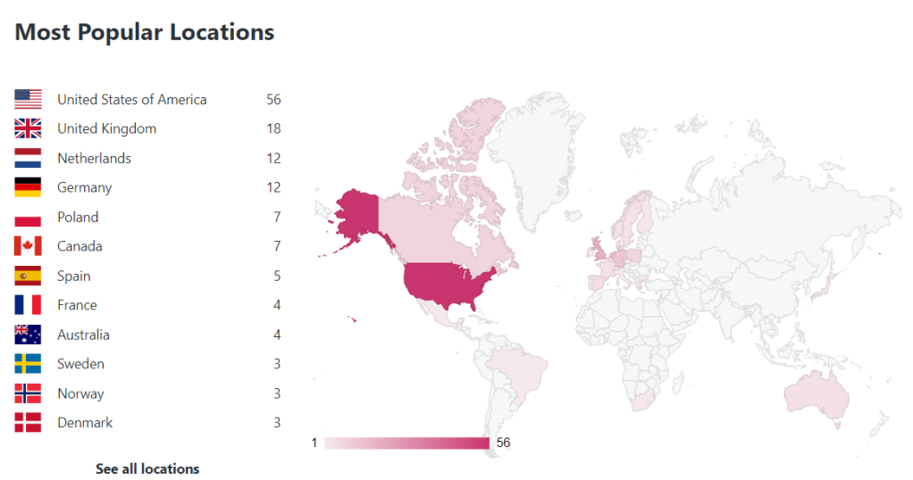 In total, the poll received 151 individual votes. This gives us a nice representation of the community when looking at the results. With a new update to the voting software I am using, I can confirm that there was very little double-voting, and can even track where the votes come from. For those interested, here is an overview of the map.