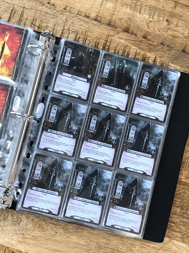 But my collection grew and grew. I had a few years to catch up, but it didn’t take long before my collection was up to date. My cards (originally stored in one binder) were divided in two maps with player cards and encounter cards, and soon after that all cycles were stored with two in one binder.
