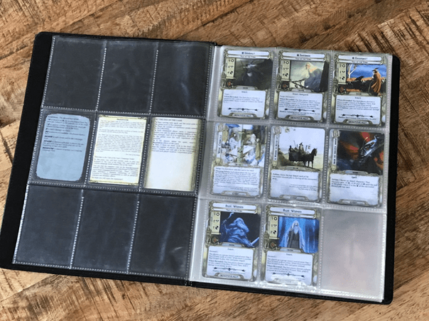 I bought these albums to store all my heroes at first, but soon they were too small. I now use them for the “projects” that have their own player cards, but not that much. All the cards for the Tale of Years and Campaign Project are in there, nicely together. In another map I store my “special” cards, like the Pre-Order Promos that came with the Limited Edition Two Player Starter and some Vengeance of Mordor AP’s.