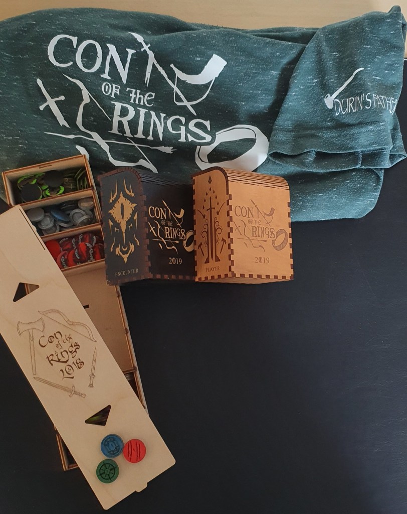 The convention also has special swag made for each event. You can select whether or not you want a special shirt for the convention, but all tickets also come with one special item that will be dealt out to all attendees. In 2018, this was a token box with wooden progress, resource, and damage tokens. In 2019, the loot was 2 wooden deck boxes with amazing artwork. There is no way to get these items outside of the convention, so attending them will be very much worth your money (even if you do not live near Minneapolis, trust me. I have an 8-hour flight to the convention each year and wouldn’t want to miss it for the world).