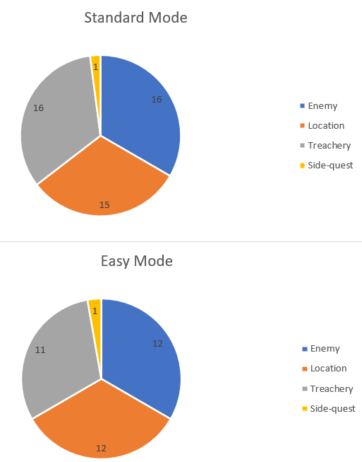 - The encounter deck is quite large, with 48 cards in normal mode, and 36 in easy mode.
