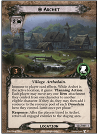Archet: So we’re off to the North again for a very dangerous cycle, which really tested The Tour in providing nice Locations for players to visit! The Bree village of Archet does actually already appear in 2 Quests – ‘Murder at the Prancing Pony’ and the Nightmare version of ‘Intruders in Chetwood’, but naturally, this is a more pleasant version. There are elements of trade, a similarity in gaining resources to its nearby village of Staddle, plus a returning of enemies to the staging area to mirror the mention of Archet in ‘Return of the King’. When the hobbits returned to Bree, Butterbur told them of the fight within Bree. After the fight, the robbers took to hiding in the woods beyond Archet.