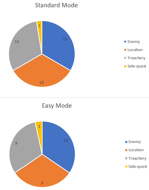 - The encounter deck is made up of 39 encounter cards in Normal mode, and 29 in Easy mode.