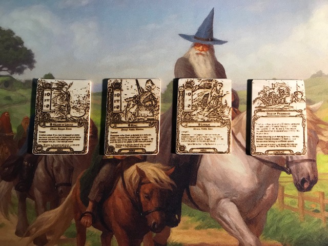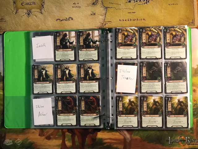 At the top of my list are a binder for my heroes, some tokens to know who is exhausted or ready without having to turn cards, and others for remembering defensive, questing, or attacking boosts. Also, a pack to carry my collection when going to a friend’s house or a Con. I would also like to track down a playmat with numbers up to 50, so I don’t have to do math 3 times while resolving quests; I may just make one.