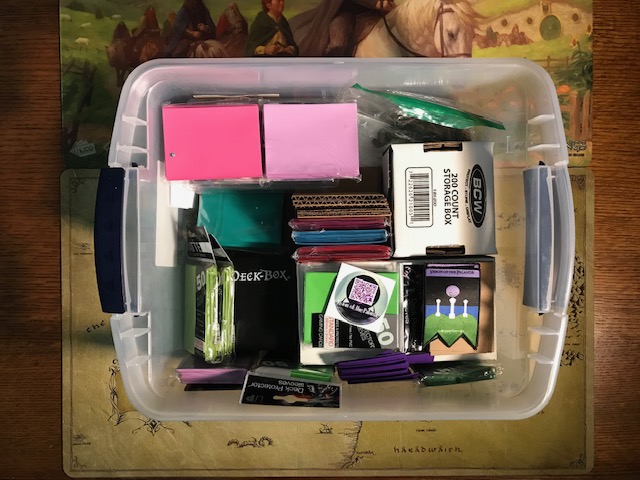 If I were to take my cards to a Con or a friend’s house, I would see what everyone would want to play and bring that cycle(s) box(es) and my one Superhive box. If the Con were out of state and I wanted to bring multiple cycles, it is still very doable. Although, I do not have a pack or travel case yet, so I currently travel with my Superhive and a cycle box in a small bin. If I am going to a friend’s house who wants to build decks I will take on of the larger bins with all my binders in addition to my Superhive.