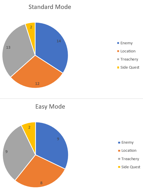 - The Encounter Deck consists of 41 cards in Normal mode and 28 cards in Easy Mode.