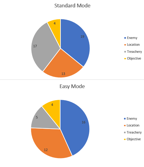 The encounter deck is pretty thick but well-balanced in Normal mode between the card types. Easy mode removes a lot of treacheries. This thinning of the encounter deck also improves your chances of finding Athelas or a Forest Grove, making it easier to get Wilyador fully healed up.