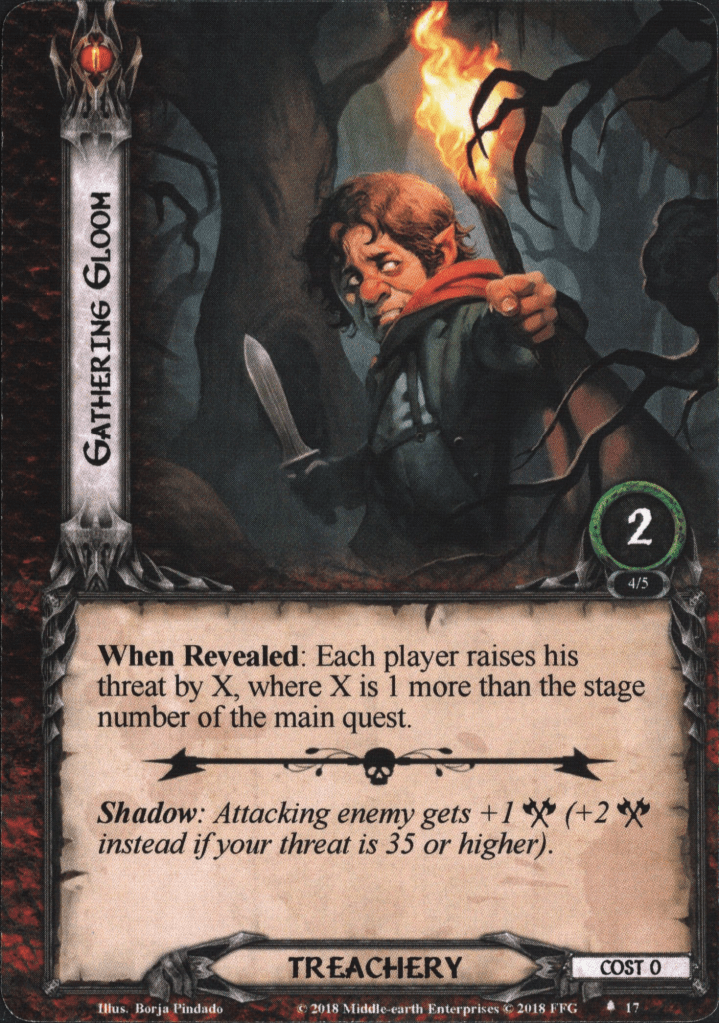- Gathering Gloom: +4 threat to each player, can combo well with one of the stages or threat out a player at this stage of the game.