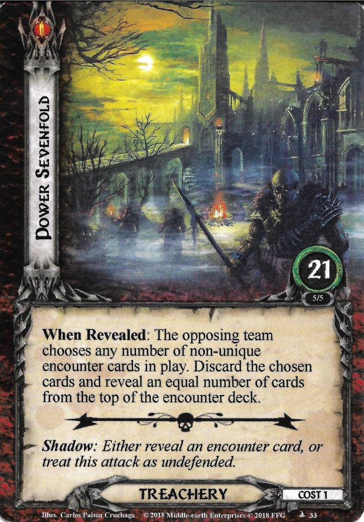 - Power Sevenfold, really change up the staging area with brand-new encounter cards. Great for if the players were placing progress on locations or damage on enemies in the staging area.