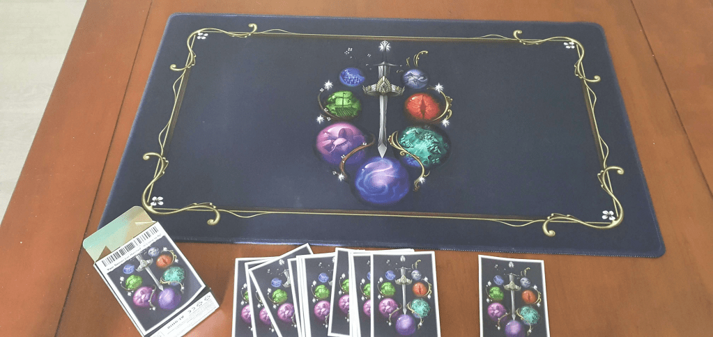 However, when I learned that Cardboard of the Rings was also doing playmats for their loot in the same year, I wanted to give supporters a choice between a playmat and a pack of custom sleeves with the artwork on it. Scaling down the artwork is quite busy, but at least I didn’t have to change the orientation for this. The sleeves were made with the Dragonshield sleeve crafter. This ensured high-quality sleeves, though they were quite expensive. Fortunately, the cost of a pack of custom sleeves and a playmat are equal, so that made the choice fairer.