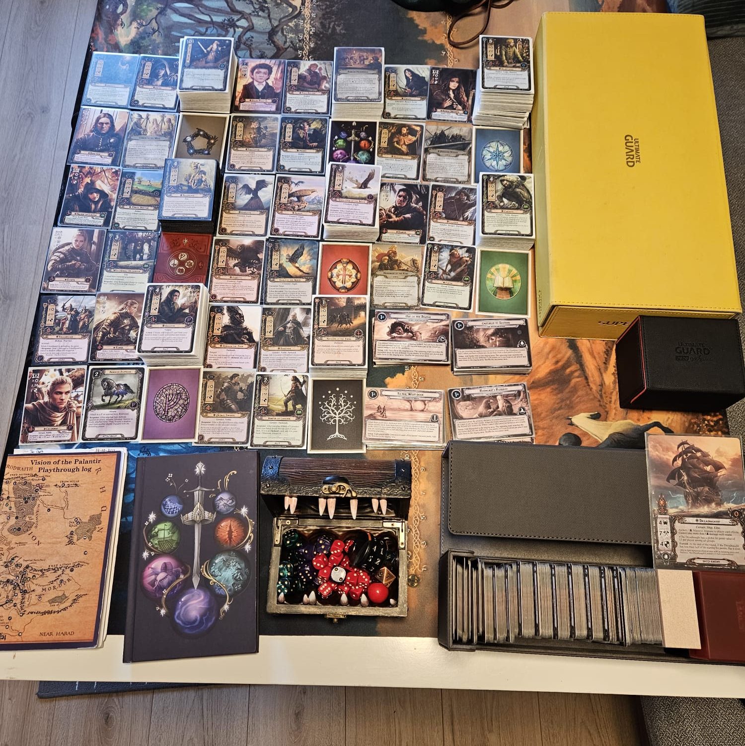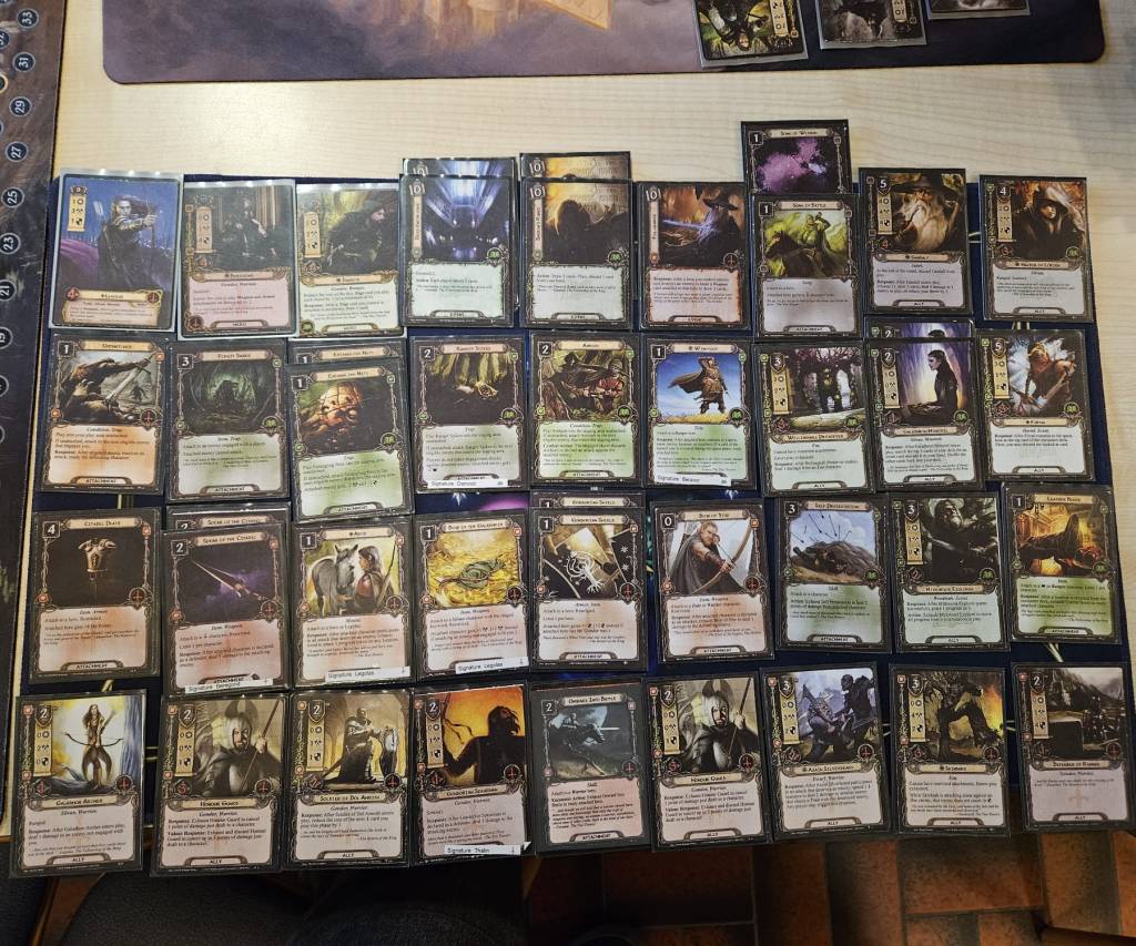 Having some past experience with the convention definitely helped while packing. Last year, I had too many player decks and not enough quests with me. Since I’m going by car, I have all the space I could need for my collection, though I decided not to bring everything with me. Carrying everything up and down the tower is a pain, even in good shoes. Instead, I went for “only” eight decks that I had crafted two weeks beforehand. This gave me some time to test the decks. The decks that I brought were (links are to the inspiration for many of the deck):