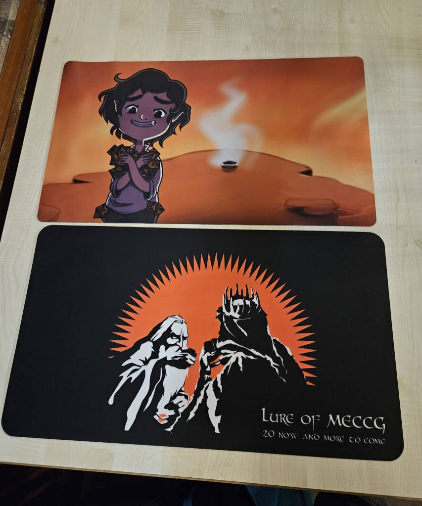 At 14:30, the convention officially began with the opening announcements. If you are only attending for LOTR LCG, you can skip half of it, but the other half is quite important. During the event, there are a myriad of challenges to beat, and those will reward you with custom alt-art cards made especially for the event. These challenges deal with special conditions for certain quests (for example: “Beat any Dwarrowdelf cycle quest by only whispering to communicate so as to not wake up the Balrog”) or to give people a chance to know each other (“play a 4-player game with players from 4 different countries”). Aside from the standard announcements about the schedule and achievements, we also got a look at the official Lure of Middle Earth 2024 swag. This was a cardboard deck box with special artwork made for the convention. It is a nice trinket to display next to my other custom deckboxes!