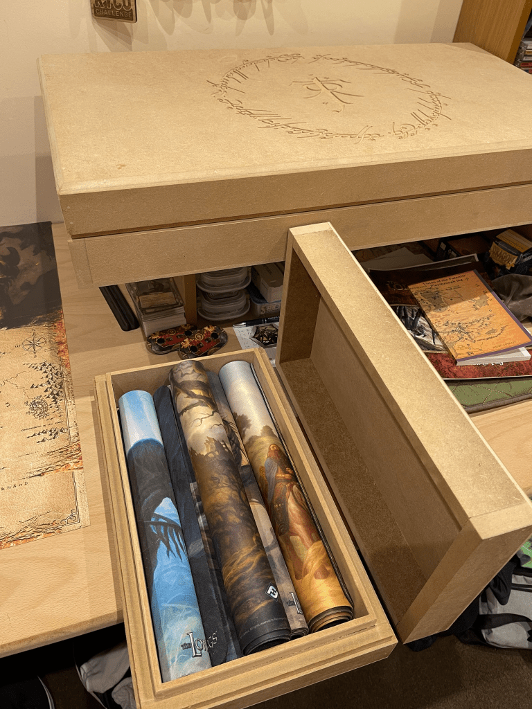 These are a few games I’ve played on various mats I have, will be using my VotP mat this week, but still have not used my CotR humongous mats yet, but that day will come. Thanks for letting me show you all these creations, I hope I’ve managed to get your juices flowing and ready for creating the next level of storage…….possibly one I’ll end up choosing to upgrade too LOL!