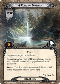 It is an easy win for the favourite encounter card of this quest. The Ford of Bruinen washes away all engaged Nazgul during the final stage, freeing you from having to face so many enemies. It’s a great thematic win and nod to the books as well. The Ettenmoors and Troll’s Camp also received votes, as both locations provide helpful buffs to the players while they are still on the road.