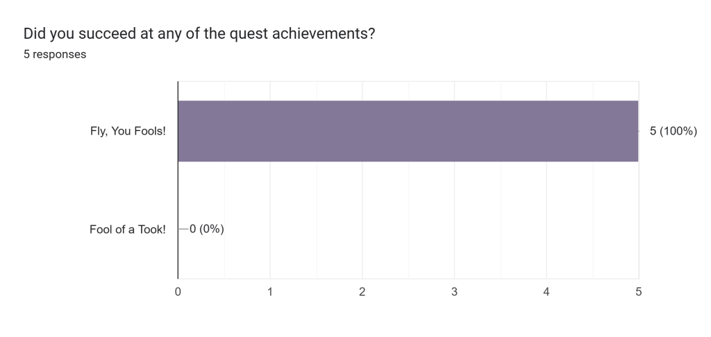 This week our Fellowship will be broken. Stay true to one another and protect the Ring-bearer at all costs so that he can escape. Once you have completed your playthroughs of the quest, please fill in this form: https://forms.gle/162zgSZM7EbqcfDP9