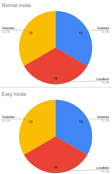 - 24 cards have shadow effects on Normal giving a shadow risk of 67%. The risk is similar for easy mode, where 20 cards have a shadow effect.
