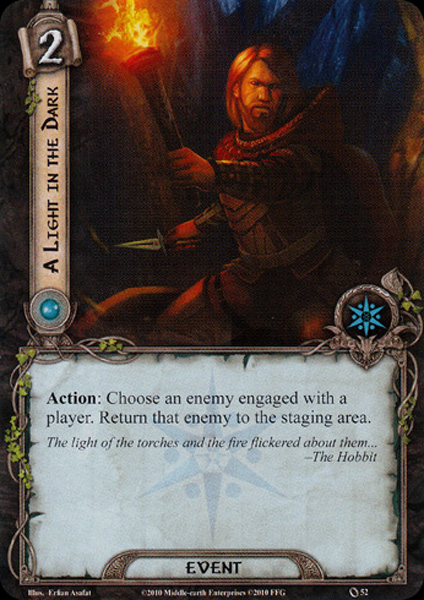 - Use a number of delaying effects until you are ready to kill the troll. Keep your threat under 30 (engagement cost of the Hill Troll), use Feint, return the troll to the staging area using A Light in the Dark, etc.