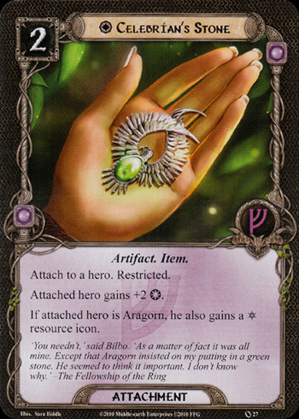 Thinking back to the many, many times I have played Escape from Dol Guldur, I am pretty confident that I have never attempted this scenario without Eowyn in my hero lineup. Her 4 willpower makes her the go-to quester from the Core Set, but unfortunately for me, she was chosen to be exhausted last week. Even worse, I can now only include one copy of Celebrian’s Stone in my deck, which makes questing even more difficult.