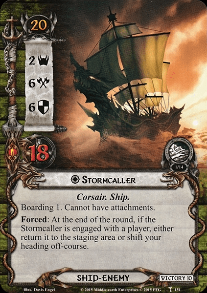 Campaign: Cirdan’s Blessing (Leadership and Tactics) placed on the defending/attacking ships was helpful to prevent damage from an engaged Stormcaller while dealing damage to it.