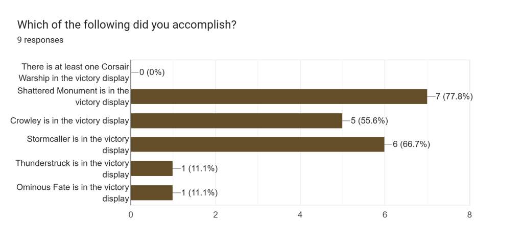 I enjoyed branching out in campaign mode beyond what I had previously done, mainly by choosing Glorinaith as my second ship, investing in having an upgraded Spyglass available, and in taking down Graxar to score the Parrying Cutlass for the first time. Even though sailing is not my favorite LotR LCG mechanic, two of my favorite quests in the game (Flight of the Stormcaller and A Storm on Cobas Haven) have so much theme and tactical decision-making that I almost don’t notice it :).