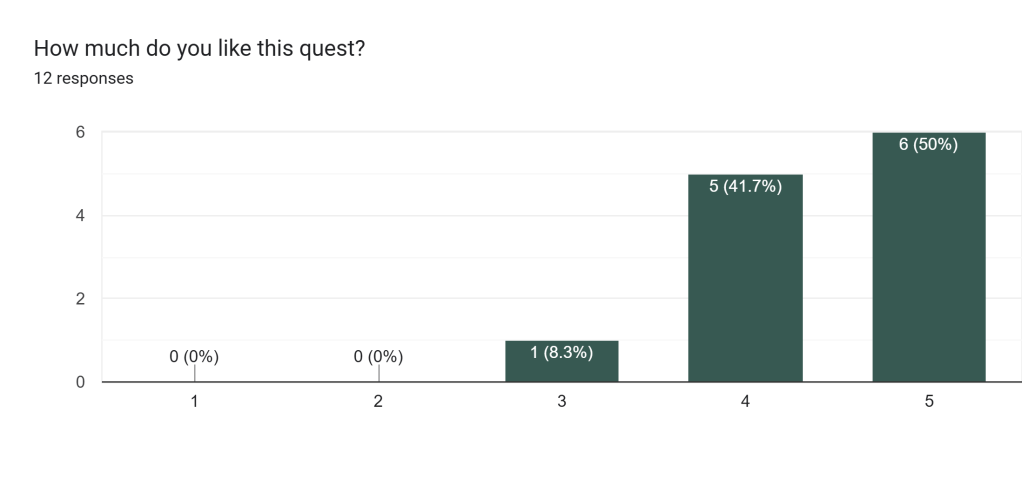 - Average opinion on the quest: 4.4