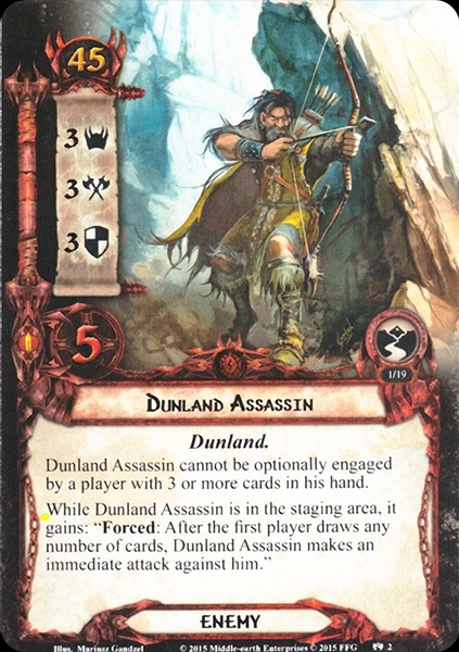 - Dunland Assassin cannot be optionally engaged by a player with 3 or more cards in their hand.