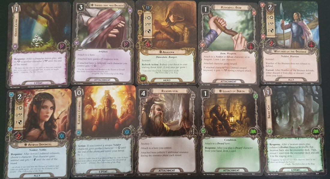 The heroes continue their journey northward to Rivendell, escorting Arwen to visit her father Elrond. But the road is long, and Orcs ambush the party along the way. With enemies hounding the heroes’ steps, the weather drives the party ever closer to the looming mountains, and the dangers they hold. Even after the journey in … Continue reading Player card review: Road to Rivendell