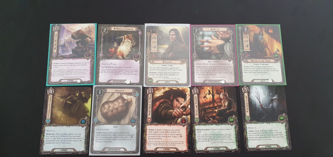 The walls are weeping water, and the air grows damp. A low rumble sounds from above, accompanied by the sound of rushing water. There are underground waterways in Moria that lead to deep darkness, and who knows what else... Deeper in the Mines of Moria you hear sounds of splashing water. The water is dripping … Continue reading Player card review: Foundations of Stone